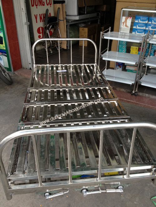 Đây là loại giường bệnh viện cao cấp nhất được sản xuất tại Việt Nam bằng inox sử dụng 3 tay quay. Ai cũng có thể quay nâng người bệnh dễ dàng với hệ thống 3 trục nâng người bệnh với các tư thế giúp người bệnh nằm thoải mái nhất.